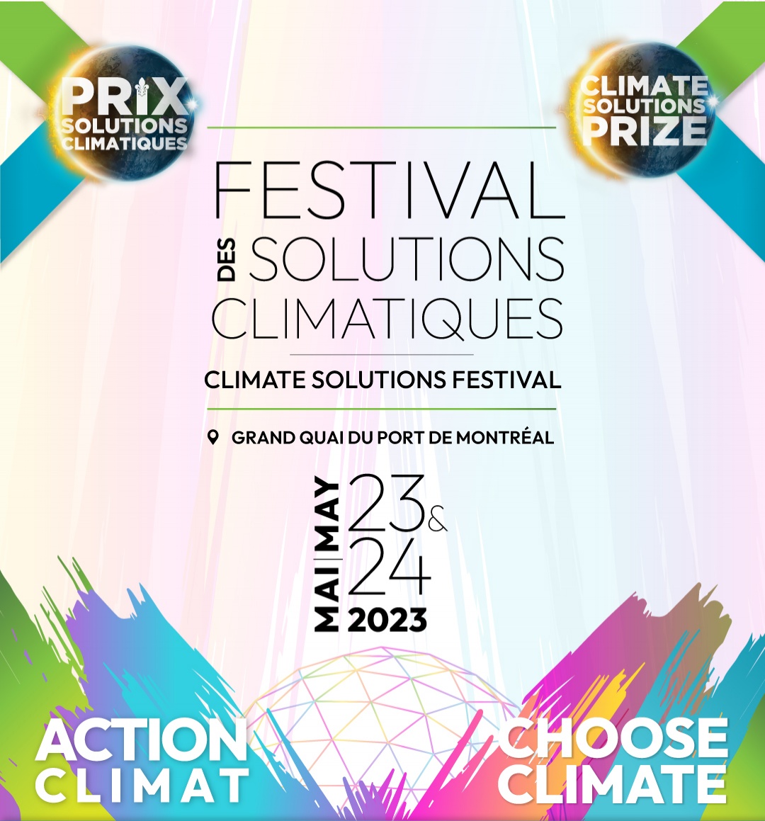 Le Festival des Solutions Climatiques réunira des centaines d'innovateurs, d'investisseurs et de conférenciers de renom au Grand Quai du Port de Montréal du 23 au 24 mai 2023. En partenariat avec Startupfest, Cycle Momentum et JNF Canada, le Festival Solutions Climat et la cérémonie des Prix porteront l'écosystème des technologies vertes du Québec vers de nouveaux sommets afin que nous puissions ensemble aider à résoudre le plus grand défi auquel l'humanité est confrontée.